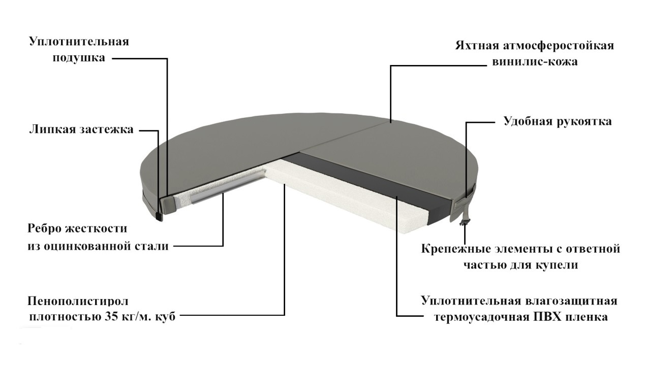 Крышка, предназначенная для купели не только должна быть максимально надёжной, но и достаточно лёгкой, один человек должен самостоятельно открывать и закрывать её. Также термокрышка должна быть изготовлена из максимально качественных материалов, которые смогут выдержать изменения температуры, высокую влажность, а также другие воздействия. Мы предлагаем термокрышки, изготовленные из высококачественных и современных материалов. Также у наших крышек есть специальные крепления, благодаря которым они надежно закрепляются на купели и не слетают от ветра.